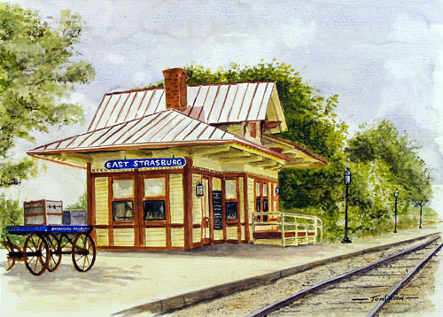 Original size: 11" x 17" matted size: 18" x 24" Historic Strasburg Railroad Station in Strasburg, Pennsylvania Check to see if the original is still available? ![]()